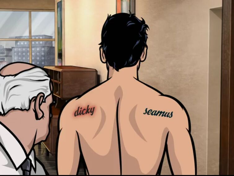 S tattoo back tattoo archer pam pam poovey archer tattoo sterling archer art of manliness angel of death halloween ideas.